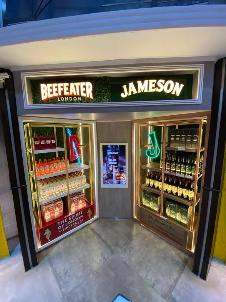 El primer espacio fue diseñado para Chivas Regal, mientras que el segundo se compartió entre Whiskey Jameson y Gin Beefeater.
