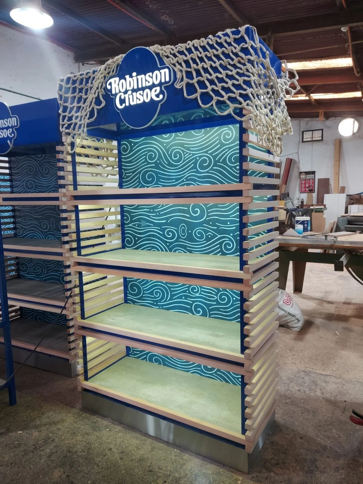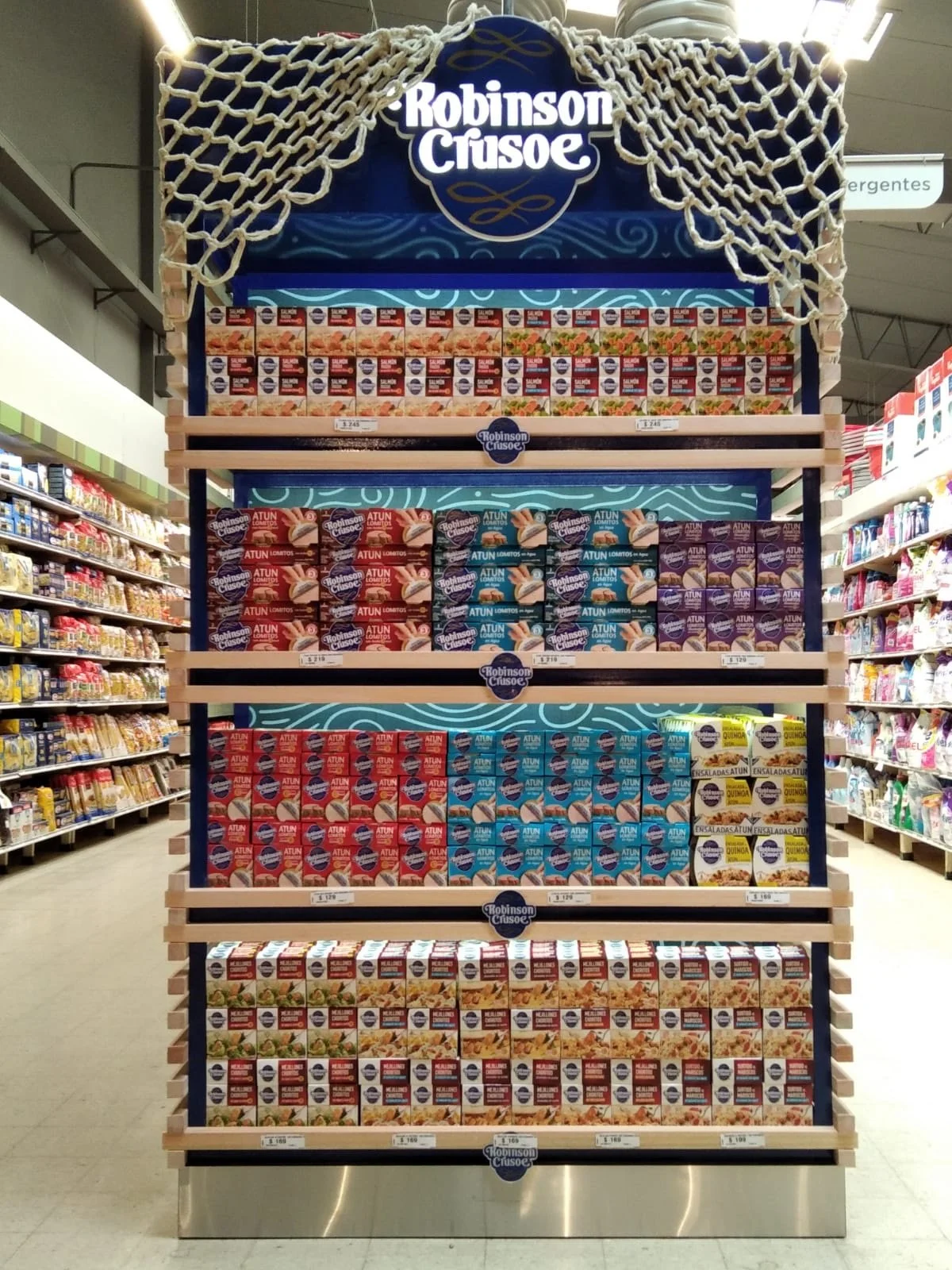 Cuando Robinson Crusoe Foods, una de las marcas más reconocidas de alimentos del mar enlatados, llegó al mercado uruguayo, asumimos el desafío de crear exhibiciones que reflejaran su esencia y capturáran la atención de los consumidores.